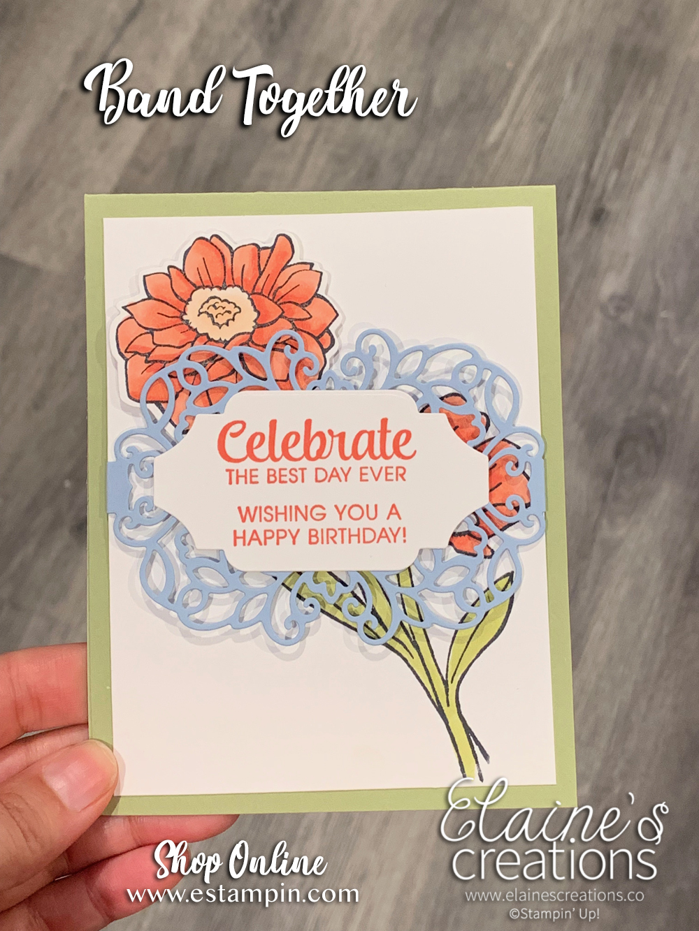 Birthday cards are a integral part of a birthday celebration. I love making handmade birthday cards. I like making the recipient feel special and giving them a part of me with a handmade birthday card. I made this card with the Band Together stamp set. The coordinating Detailed Band Dies have beautiful swirls and labels to add that special touch to the card. Would you like to receive this card? Just place an order for this bundle by August 31st and I’ll send you this card and a gift!