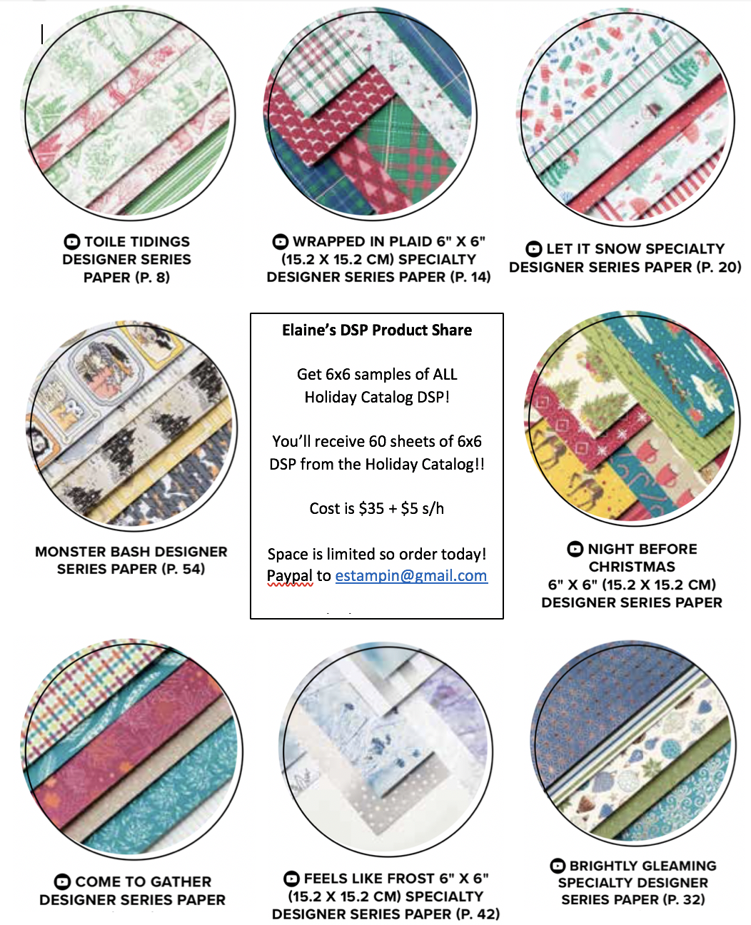 Introducing my new Designer Series Paper holiday catalog paper products share! You get 60 sheets of 6×6 Designer Series Paper from each of the eight Designer Series Papers from the Holiday catalog all for $35 + $5 shipping/handling.