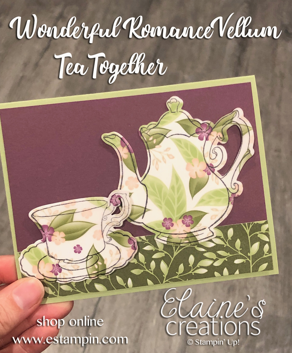 There are so many amazing things you can do with vellum. One way to use vellum is to stamp on printed vellum with staz on ink. I stamped the tea pot and cup with saucer in jet black staz on directly on the beautiful printed Floral Romance vellum.