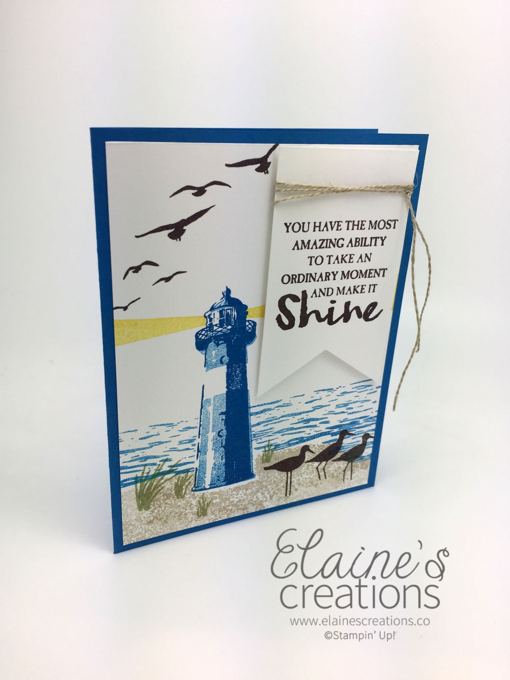 We had some super duper hot temps this past weekend (in the 100s!!!) which is not typical for the bay area. So this beach card I made with the High Tide stamp set helped me think of cool breezes!  The High Tide stamp set makes creating a calm beach scene so easy!  Give it a try!