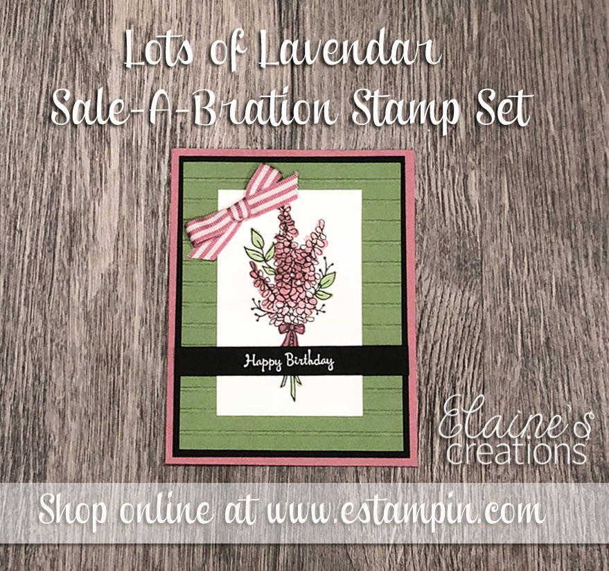 Receive this pretty Lots of Lavender stamp set for free with a $50 merchandise order. Then make this pretty birthday card with Sweet Sugarplum birthday wishes! The stamp set has a watercolored look that adds different depths of color to the flowers. Tip: Make light colors stand out on dark card stock by embossing them with white embossing powder.