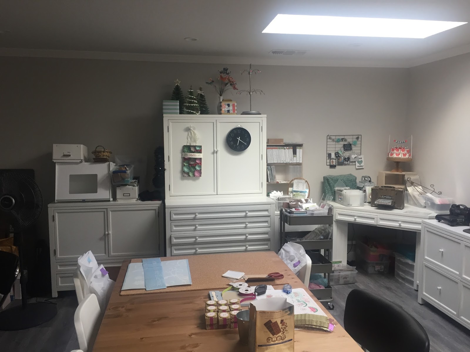 I bought a file cabinet for current card stock and a corner table for my big shot and sewing station. When I get back from Thailand, I’ll do a video of the new space and post it.