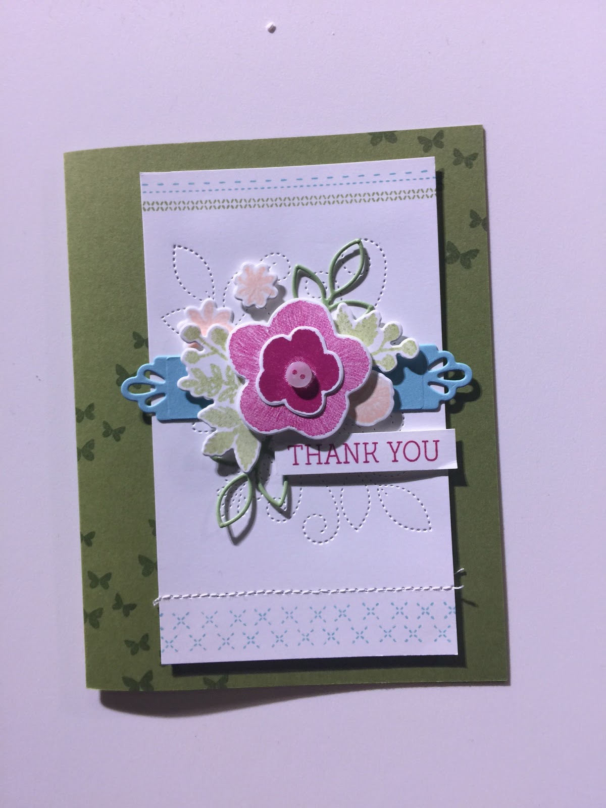 She also demonstrated the Tea Together stamp set with the coordinating free Sale-A-Bration Tea Time Framelit Dies