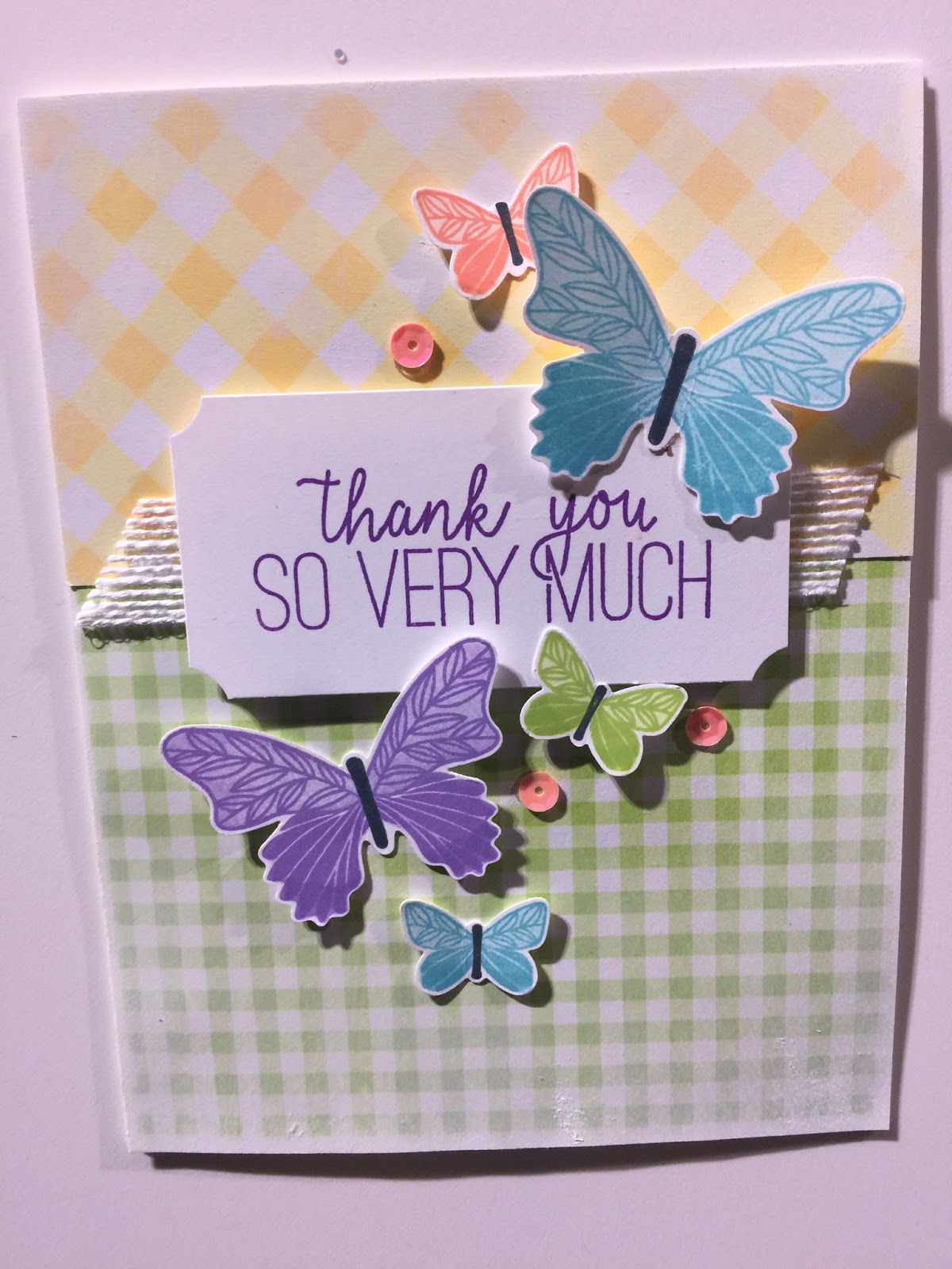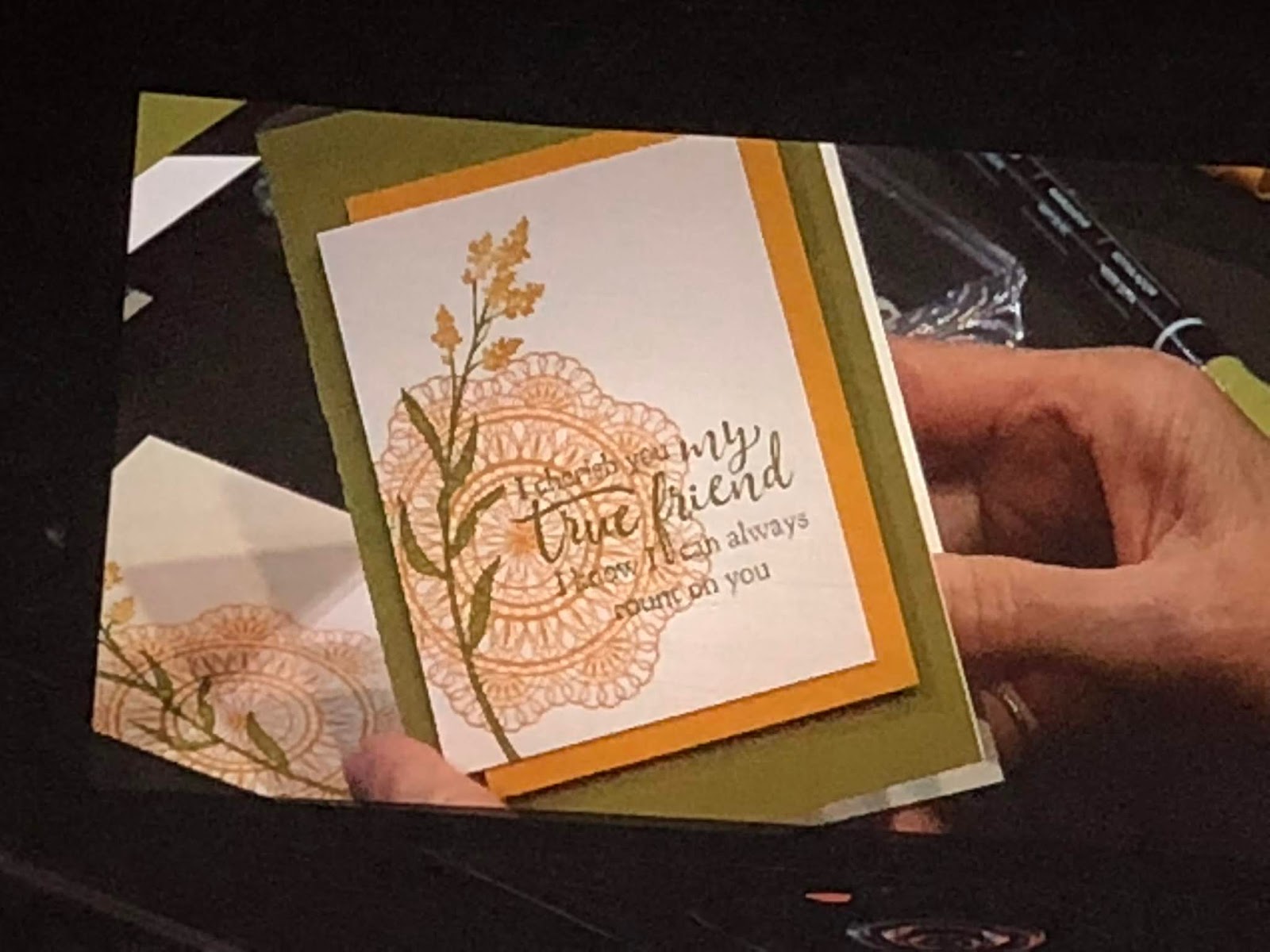 Shelli gave the next stamping presentation with several stamp sets from the Occasions catalog. The first stamp sets were Best Catch and the Crackled Background stamp set.