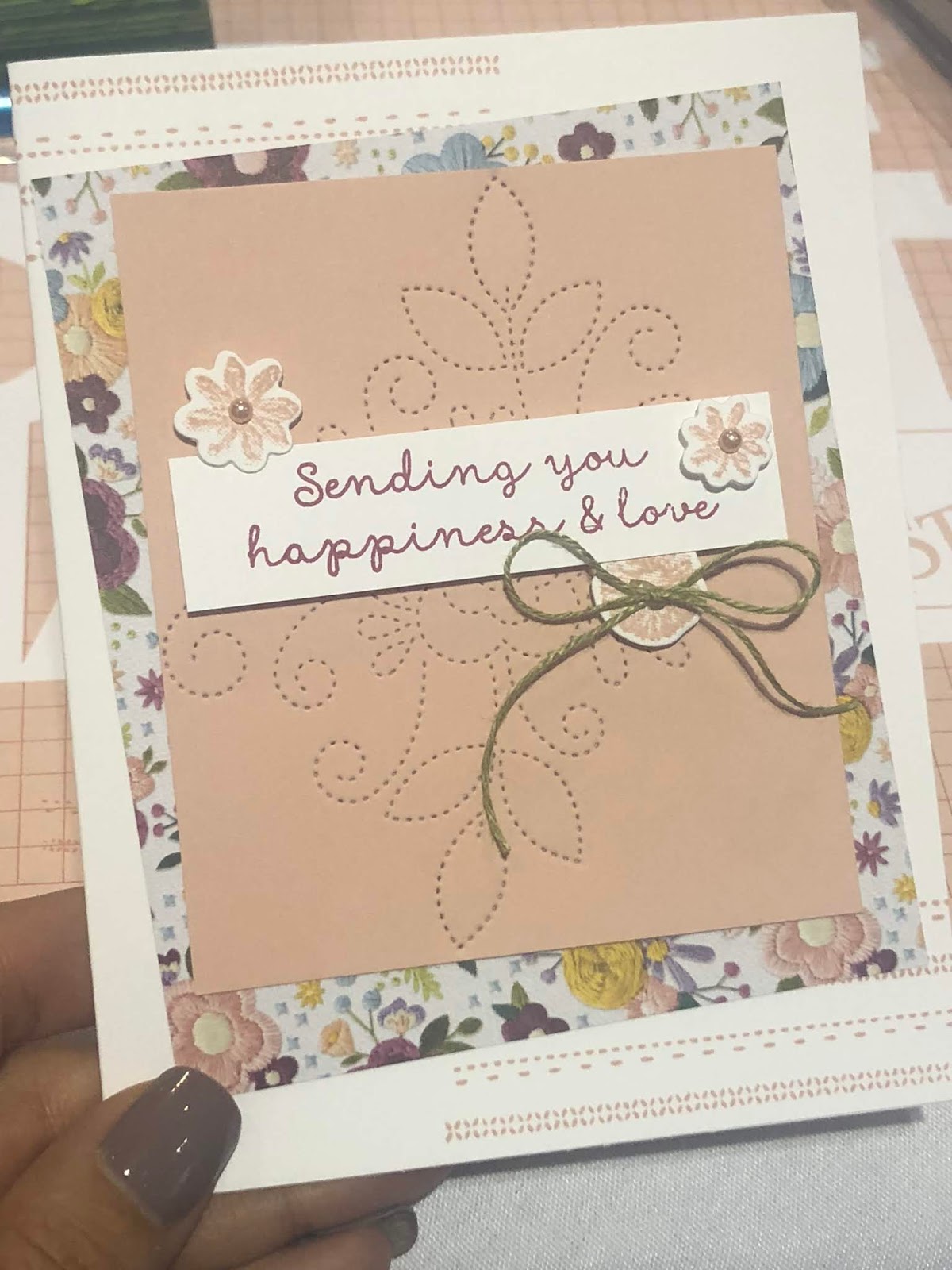Lastly she showed us this card and sweet cup using the All That You Are stamp set (which coordinates with the Frosted Bouquet Framelit Dies!)