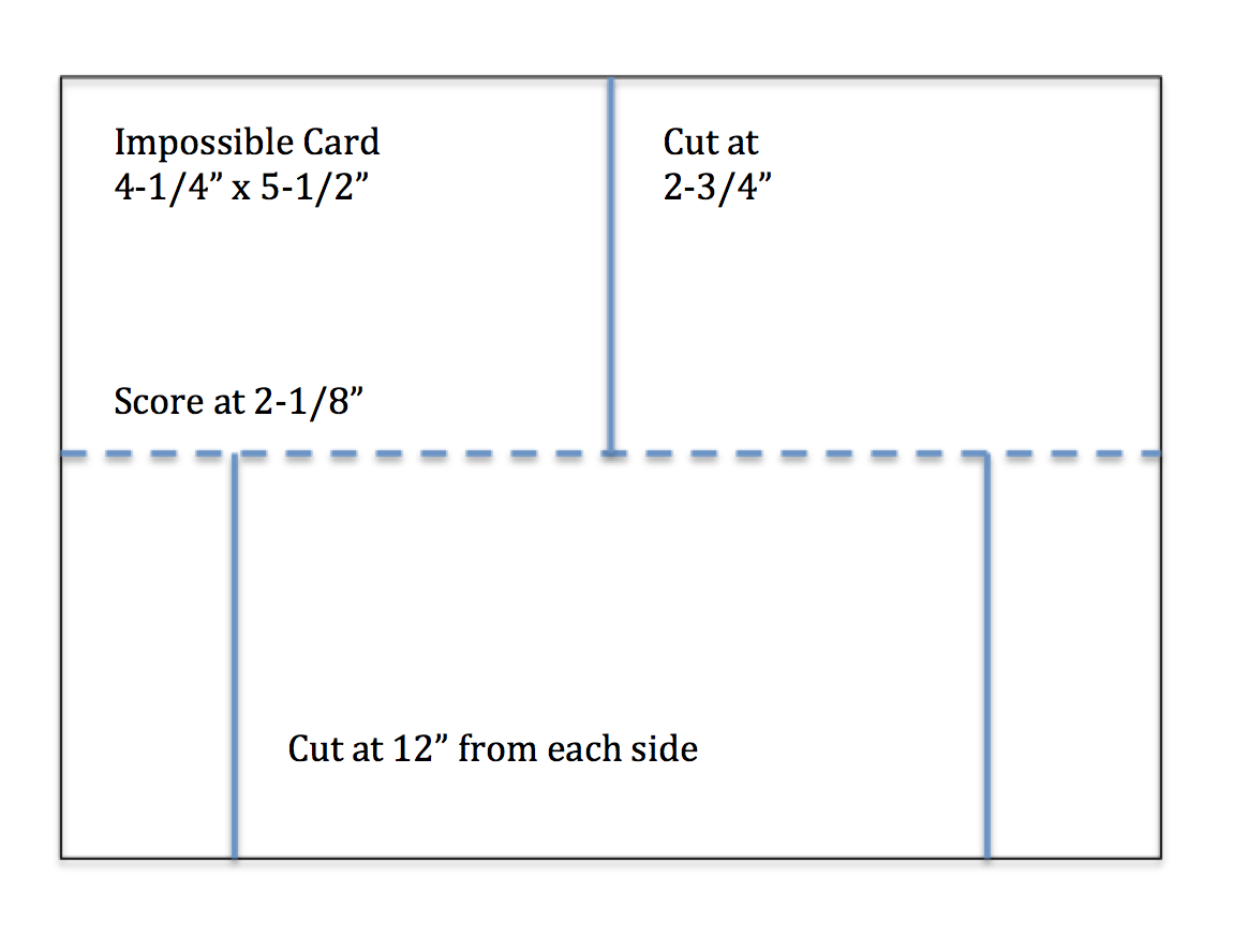 Want to make an impossible card with the Sea of Textures stamp set? Start with a 4-1/2″ x 5-1/4″ piece of card stock and scored it in half lengthwise at 2-1/8″. Then cut at 2-3/4″ on one side to the score line and cut 1″ from each edge on the other side.