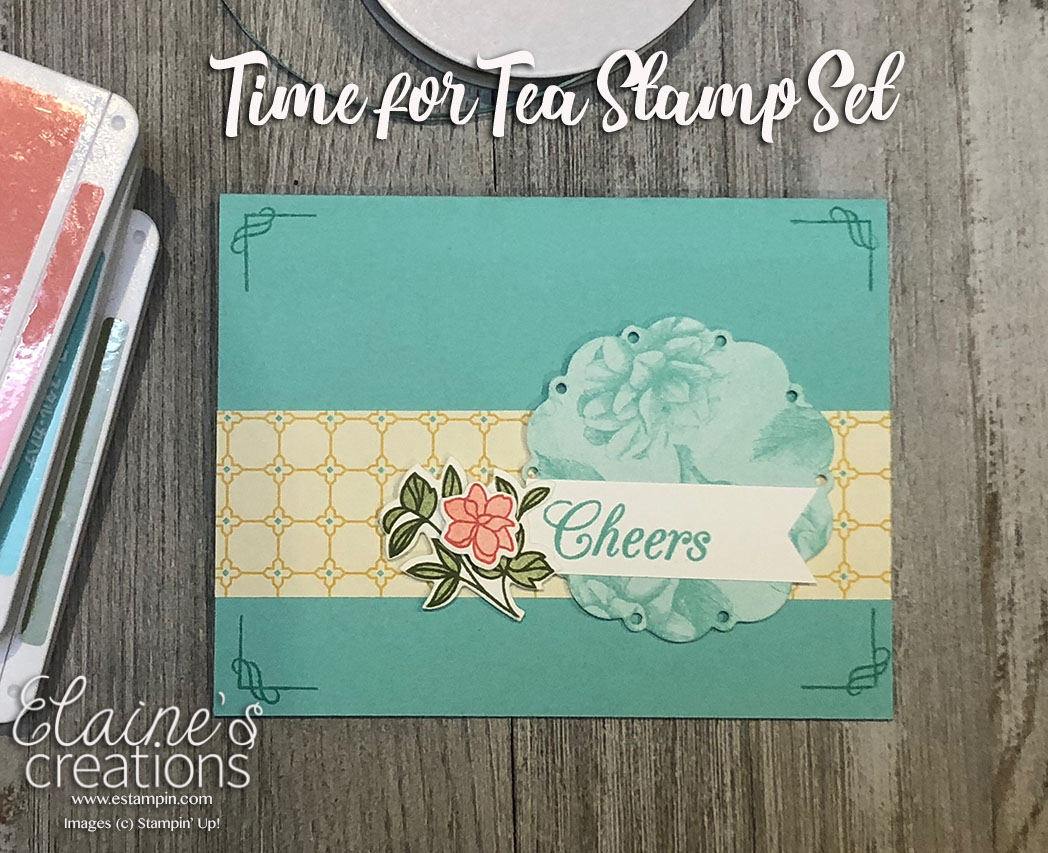 Would anyone like a spot of tea? I am sure loving all the great products in the Tea Room Suite! Lovely Designer Series Paper, Gold Vinyl stickers, ribbon, and more! I created this simple card based off a sample in the catalog. Have you noticed the Spot of Tea Framelits have two sets of flowers and leaves making cutting images out faster? What a great idea for quickly creating cards and projects! Don’t just take my word for it, order your Tea Room suite of products and fall in love with them yourself!