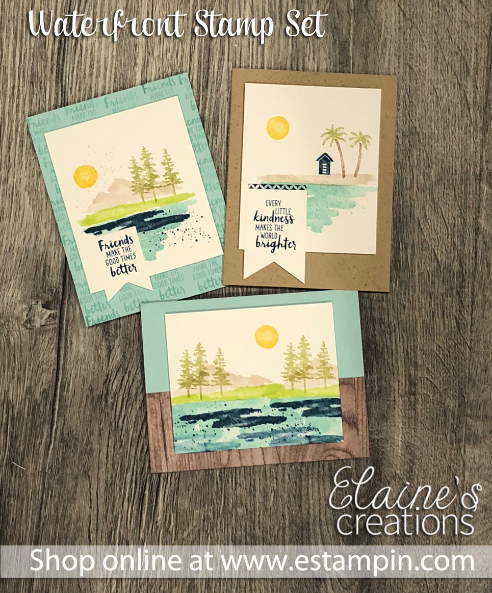 The Waterfront stamp set makes amazing cards! Beautiful landscapes and scenery! I had a lot of fun creating these scenic cards – the Waterfront stamp set makes it so easy!